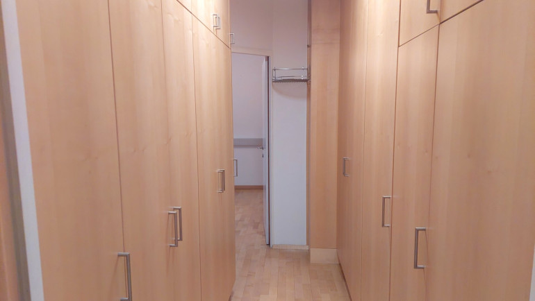 Die Wohnung ist mit Fliesen und Parkettböden ausgestattet. Die komplette Einbauküche lädt dazu ein, kulinarische Köstlichkeiten zu zaubern, während zwei Badezimmer (mit Dusche und Badewanne) sowie zwei WC höchsten Komfort bieten. Ein großer begehbarer Schrankraum trägt ebenso zum Komfort bei.