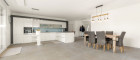 Offener Wohn-/Ess-/Küchenbereich mit elektrischen Raffstoren/Rollos