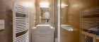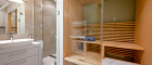 Ein sehr geschmackvoll gestaltetes Bad mit Fenster, Erlebnisdusche, Waschtisch und dem großen Highlight - einer Sauna, runden das Angebot ab. Das WC ist extra angeordnet.