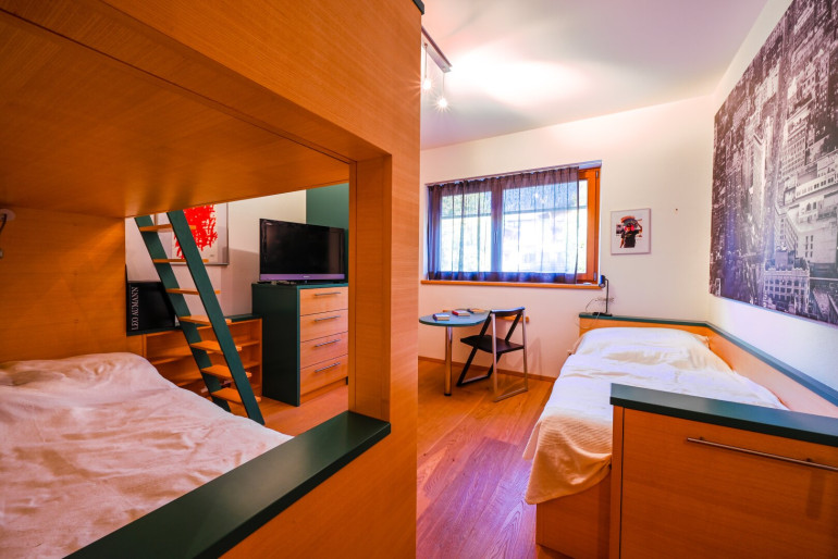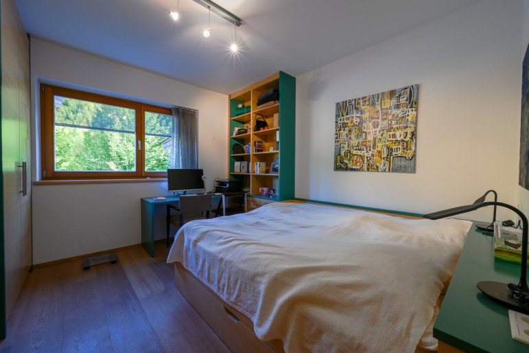 Das Kinderzimmer/Büro bietet ausreichend Platz, ebenso wie das großzügige Elternschlafzimmer, die ebenfalls durch die offene Decke ein ganz besonderes Raumgefühl ausstrahlen.