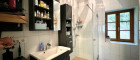- Badezimmer mit Fenster, Dusche, Waschtisch und Waschmaschinenanschluss