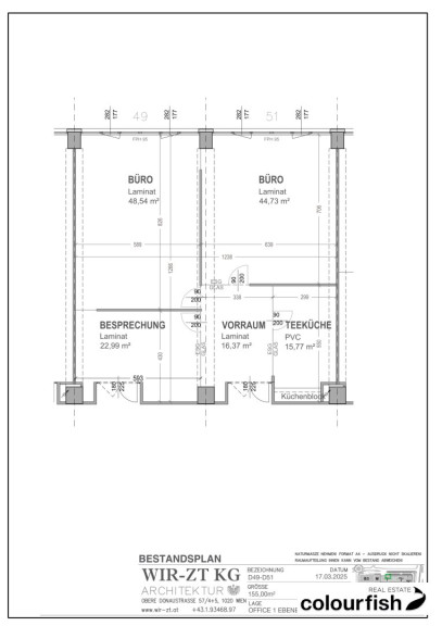 3. OG, Top D 49-51 ca. 155 m² - netto € 14,50/m²/Monat (Büro ausgebaut, Küche, Besprechung)