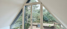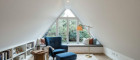 2. DG: Galerieraum mit großem Atelierfenster und Blick über Wien, ein Schlafzimmer, Bad mit Dusche und WC