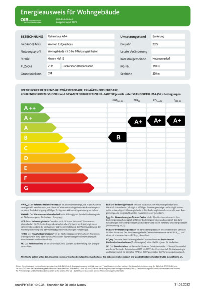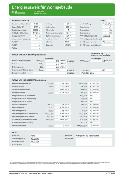 | Heizwärmebedarf: | 31,10 kWh/m²a |