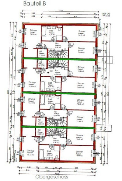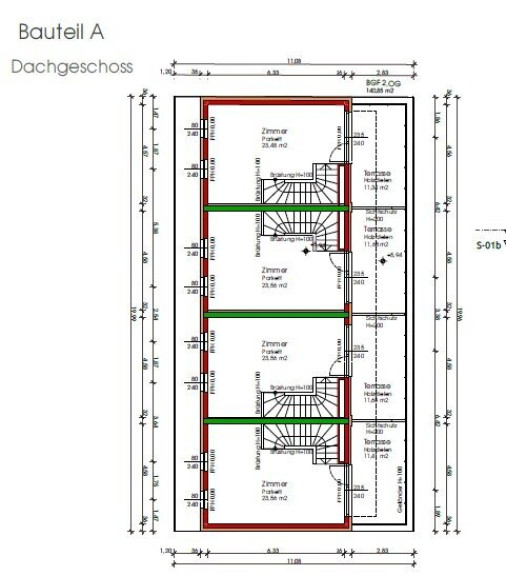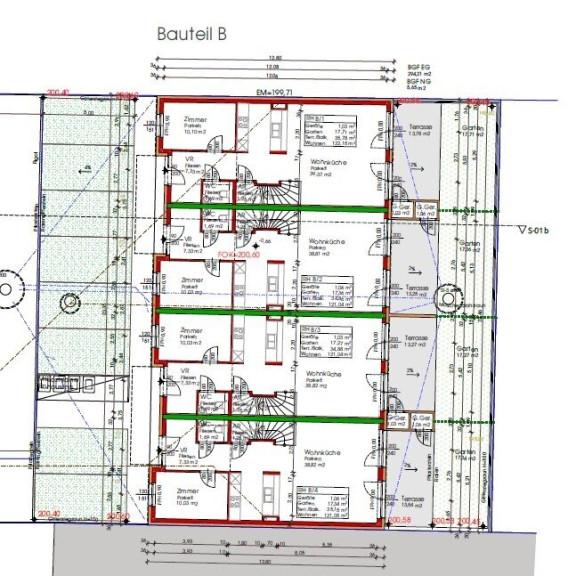 Typ B 1-4: Je RH ca. 122 m² Wfl + ca. 35 m² Terrassen + ca. 17 m² Garten