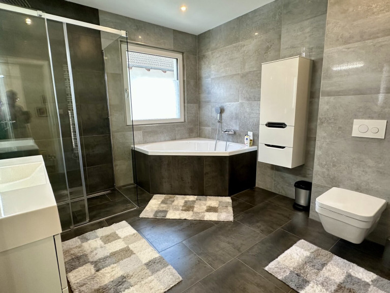 Die beiden eleganten Badezimmer und zwei WCs bieten Ihnen sowohl Komfort als auch Privatsphäre. Ideal, wenn Sie Gäste empfangen oder einfach nur einen entspannten Abend in Ihrem neuen Heim verbringen möchten.