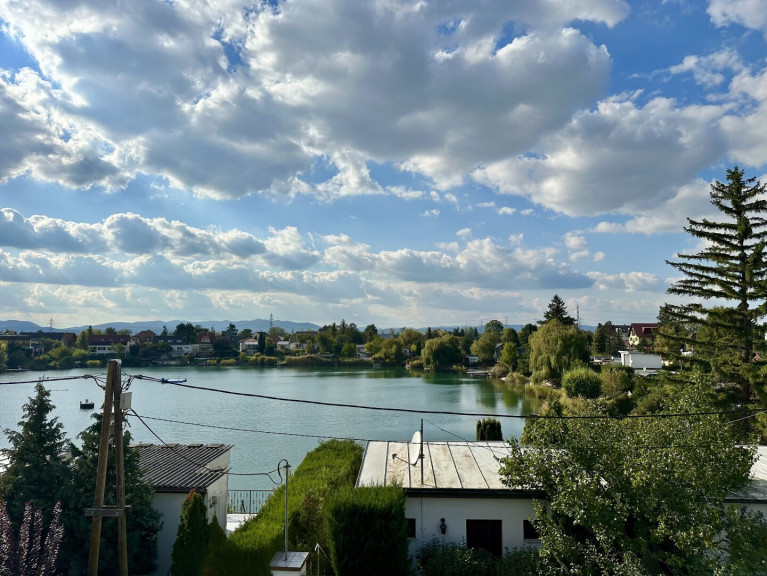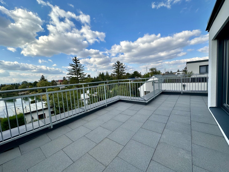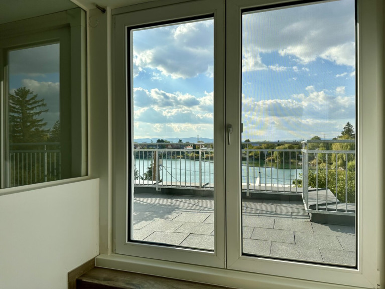 Ein besonderes Highlight dieser Immobilie ist der atemberaubende Seeblick, den Sie von Ihrer großzügigen Dachterrasse aus genießen können. Stellen Sie sich vor, wie Sie die Abendsonne bei einem Glas Wein oder einem gemütlichen Familienessen auskosten – ein perfekter Ort, um den Alltagsstress hinter sich zu lassen. In wenigen Schritten erreichen Sie den glasklaren See, welcher Ihnen als Einwohner von Leopoldsdorf zum Baden zur Verfügung steht. Die Immobilie befindet sich in zweiter Reihe zum See, die Widmung der Nachbarliegenschaften garantiert auch künftig den unverbaubaren Blick auf türkis-blaues Wasser!