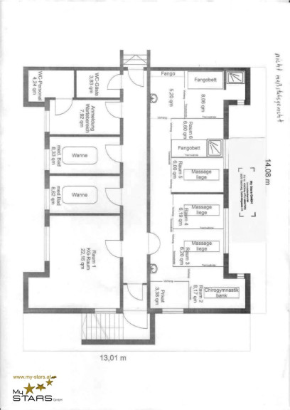 - ca. 137 m² auf 6 Räumen mit 6 abgetrennten Behandungs-Cojen und Gymnastikraum
