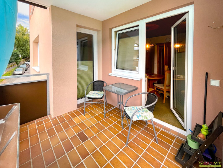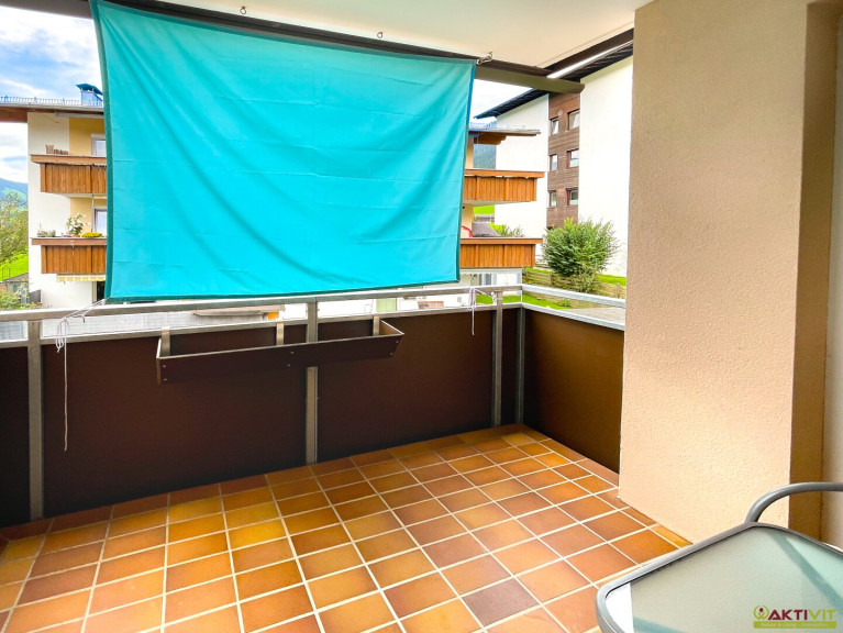 - Westseitiger Balkon / Loggia mit Ausblick ins Grüne und auf die Berge
