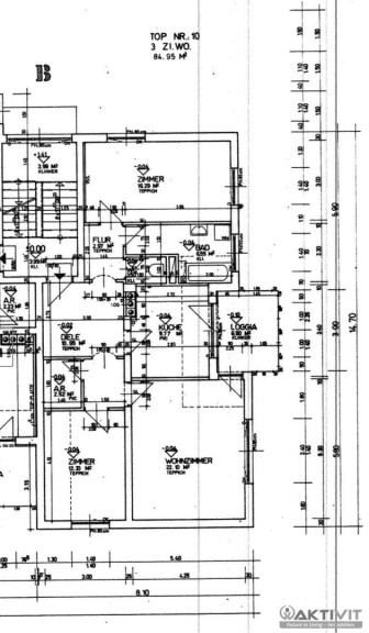 Die Wohnung verfügt über eine Wohnfläche von rund 85 m² und liegt im 1. Obergeschoss eines im Jahr 1986 errichteten Mehrparteienhauses. Der Zugang erfolgt über einen zentralen Vorraum, von dem aus alle Räume erschlossen sind.