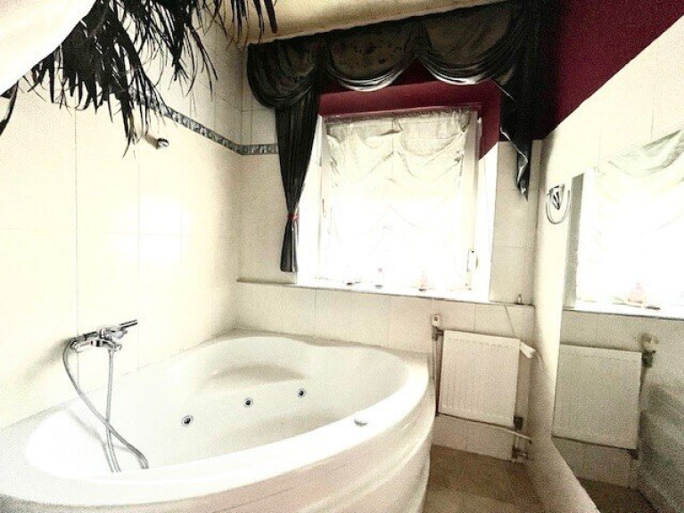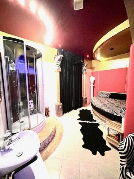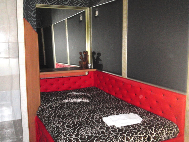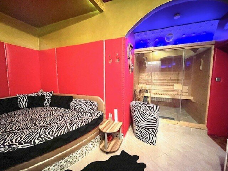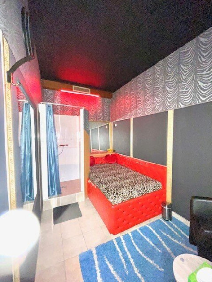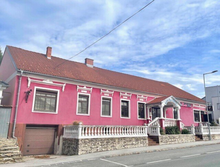 Durch den straßenseitig gelegenen Eingang betritt man das Café mit Theke-Schankbereich im vorderen Bereich der Immobilie. Angrenzend befindet sich der Nachtclub mit der Bar, einer Tanzfläche mit Poledance-Stange sowie nischenähnlich angeordneten Loungeplätzen. Von diesem gelangt man über ein längliches Vorzimmer zu den Separees, teils mit Whirlpool oder Sauna ausgestattet. Diese Räumlichkeiten können auch durch einen weiteren Eingangsbereich, direkt von der Straße sowie einer weiteren Zufahrtsmöglichkeit über den Hinterhof erreicht werden. Im Haupthaus der Immobilie liegen in einem zweiten Trakt die Gemeinschaftsküche, das Wohnzimmer, vier Personalzimmer und das Badezimmer. Über den Hof gelangt man zu zwei weiteren Zimmern, jeweils mit Dusche und WC. Im hinteren Teil der Immobilie liegt eine über die Außentreppe erreichbare größere Wohneinheit im ersten Stock, mit dem Wohn-Schlafraum, der Loggia mit dem Blick ins Grüne und dem Badezimmer.
