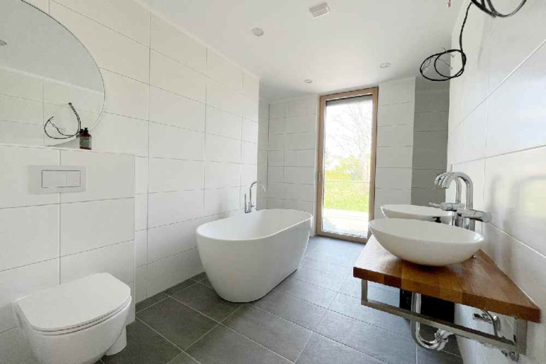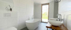 Das Badezimmer ist mit einer modernen Dusche und einer Badewanne ausgestattet und bietet Raum für Wellness und Erholung. Ein separates WC sorgt für zusätzlichen Komfort im Alltag.