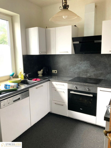 Parkett, Fliesen, Laminatboden, Öl, Zentralheizung, Einbauküche, Bad mit Fenster