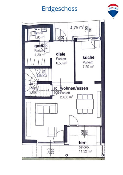 Mit einer Fläche von ca. 99 m² verteilt auf 4 Zimmer, finden Sie hier ausreichend Platz für Ihre individuellen Wohnbedürfnisse. Die durchdachte Raumaufteilung ermöglicht es Ihnen, sowohl Rückzugsmöglichkeiten als auch gesellige Bereiche zu schaffen.