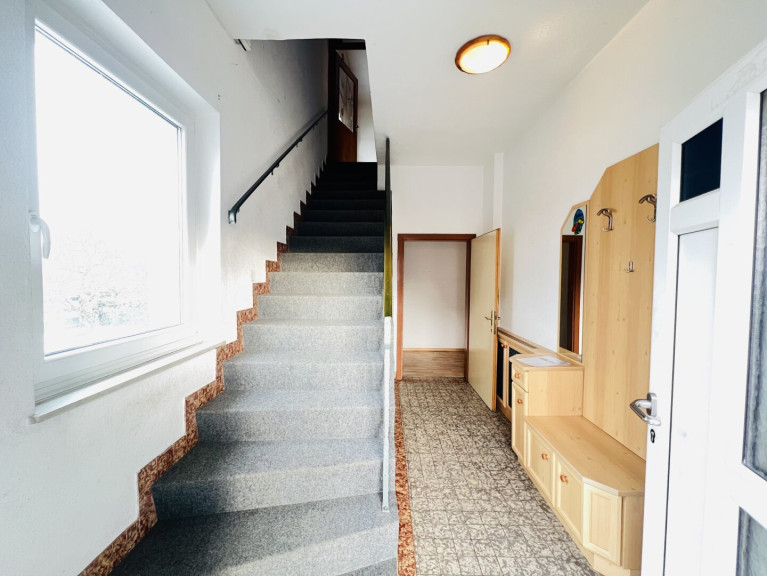 1. OG: Der Zugang erfolgt über einen eigenen Eingang in der Schulstraße. Eine Treppe führt in die großzügige Wohnung im Obergeschoss mit 140 m² zuzüglich Terrasse. Sie besteht aus Vorraum, 5 Zimmer, Küche, Bad mit Badewanne und Dusche, WC und Terrasse. Das Obergeschoß ist aktuell ebenfalls vermietet und kann das Mietverhältnis von einem Erwerber unter Einhaltung der gesetzlichen Kündigungsfristen aufgelöst werden.