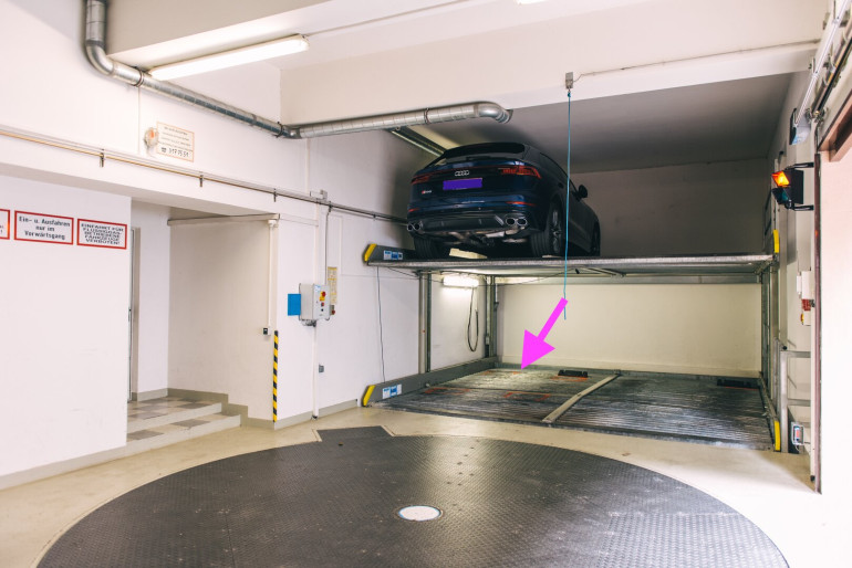 Ein Garagenstellplatz im Haus kann um 130 euro pro Monat angemietet werden.