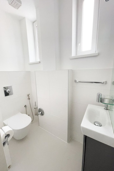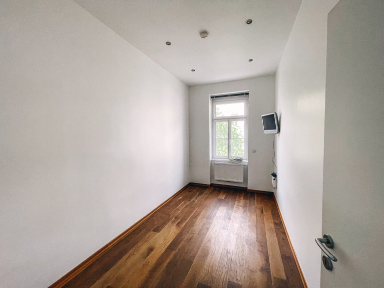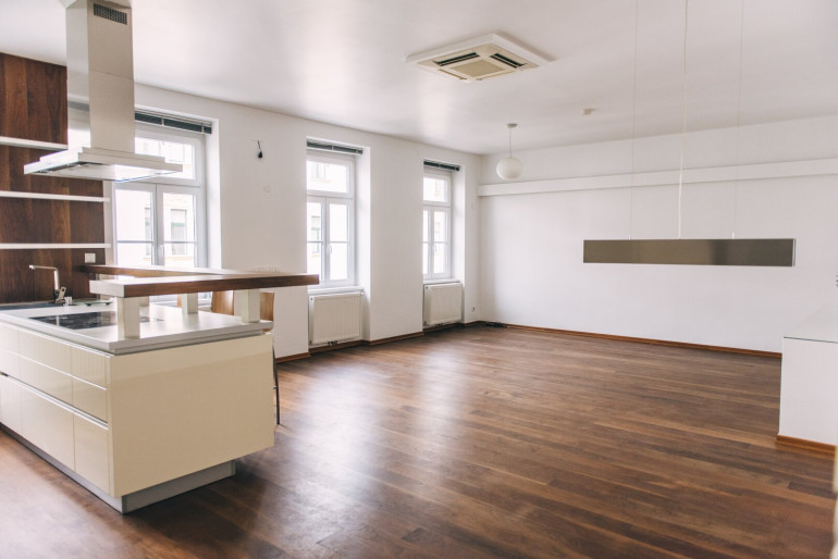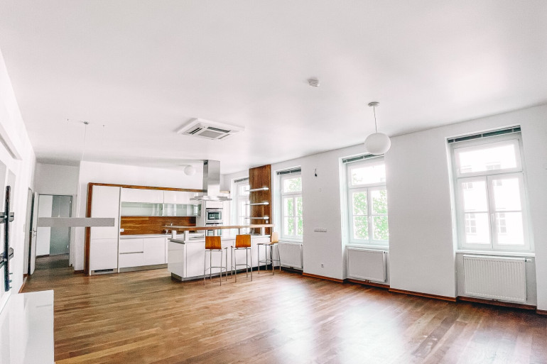 Die Wohnung befindet sich im dritten Stock eines Hauses mit Lift und überzeugt durch elegante Holzböden, hohe Räume und gute Lichtverhältnisse. Herzstück ist der rund 49 Quadratmeter große Wohn und Essbereich mit offen integrierter, voll ausgestatteter Küche. Der ruhige, südseitige Balkon liegt hofseitig.