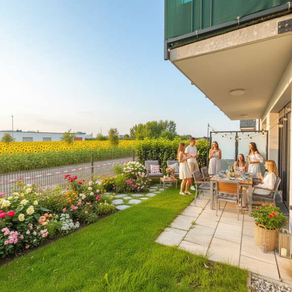 Die schicke 2-Zimmerwohnung im Erdgeschoss betritt man durch den gepflegten Eingangsbereich, welcher ausreichend Platz für eine Garderobe sowie den zentralen Zugang zu allen Räumlichkeiten der Wohnung bietet. Unmittelbar links vom Eingangsbereich befindet sich das Badezimmer mit Duschbadewanne und ein seperates WC. Beide Nassräume sind durchgehend mit modernen Fließen ausgestattet. Ein Abstellraum schafft Stauraum für nützliche Alltagsgegenstände. Das Schlafzimmer bietet genügend Platz für ein großes Bett und einen Kleiderschrank. Der Wohn- Essbereich ist mit einer Einbauküche sowie modernen Gerätschaften ausgestattet. Die großen Fenster sorgen für viel Licht im Wohnraum,der helle Parkett lässt den Raum offen und freundlich wirken. Die sonnige, idyllische Terrasse gewährt mitsamt einer Gartenfläche von 28,00m² Ruhe und Erholung und hat eine angenehme Größe für einen geselligen Grillabend.