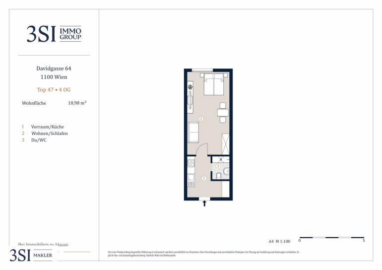 Willkommen in dieser liebevoll gestalteten knapp 19 m² großen Wohnung im 4.Stock eines gepflegten Altbaus. Der gut geschnittene, kompakte Grundriss sorgt für eine angenehme Raumatmosphäre und bietet alles, was man für ein komfortables Zuhause benötigt.