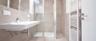 - Badezimmer mit Doppelwaschtisch, Dusche und Handtuchheizkörper