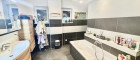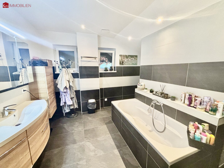 Die durchdachte Raumaufteilung sorgt dafür, dass jeder Bewohner seinen persönlichen Rückzugsort findet. Die zwei modernen Bäder, ausgestattet mit Dusche und Badewanne, garantieren komfortables Wohnen für die ganze Familie. Die Fußbodenheizung sorgt für wohlige Wärme, während die hochwertigen Fliesen eine zeitlose Eleganz ausstrahlen. Die Einbauküche ist nicht nur funktional, sondern auch ein Treffpunkt für kulinarische Abenteuer und gesellige Abende.