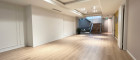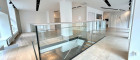Eine breite Stahl-Glas-Treppe führt ins Untergeschoss (ca. 50 m²): ein rechteckiger Verkaufs-/Präsentationsraum (ca. 50 m²) und ein Ausgang/Fluchtweg zum gemeinsamen Treppenhaus.