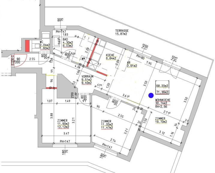 71,36 m2 Wohnfläche zzgl. 15,87m2 Terrasse,