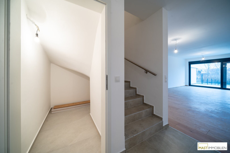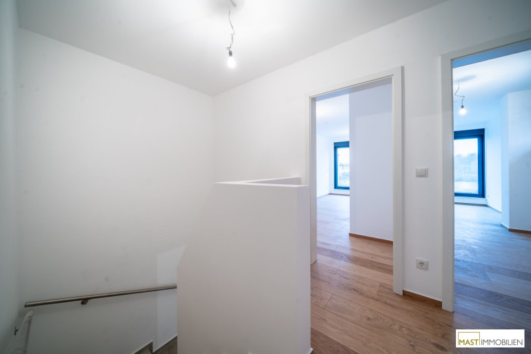 Aktuell befindet sich das Haus in nahezu bezugsfertigem Zustand. Der Parkettboden kann von Käufer noch selbst ausgewählt werden, bevor die Fertigstellung komplett erfolgt.