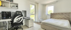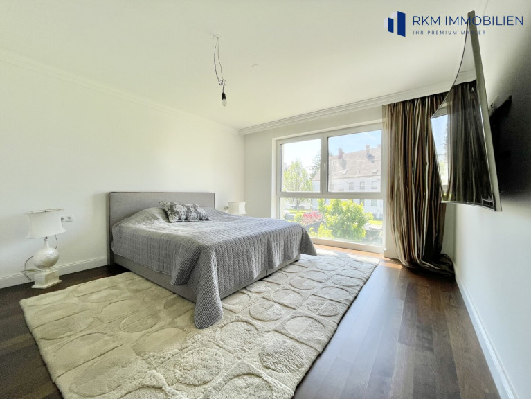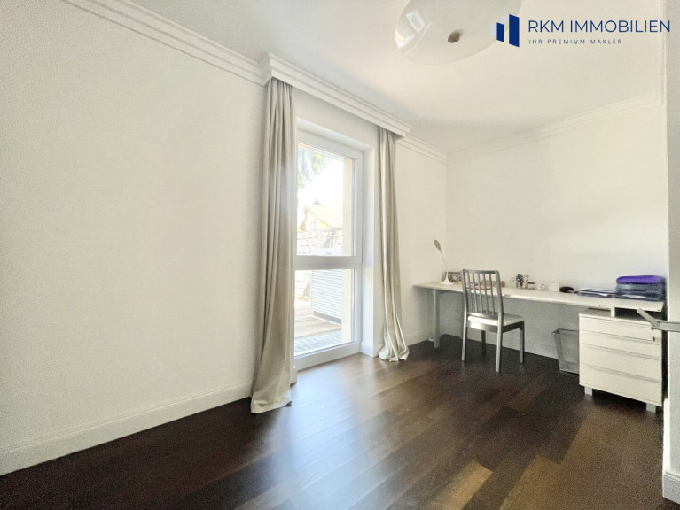 Im Erd- und Obergeschoss erwarten Sie insgesamt fünf lichtdurchflutete Zimmer, die vielseitig nutzbar sind – ob als Schlafzimmer, Home-Office oder Rückzugsort für die ganze Familie. Die stilvolle Kombination aus Parkett- und Fliesenböden sorgt für ein angenehmes Wohnklima und eine elegante Atmosphäre.
