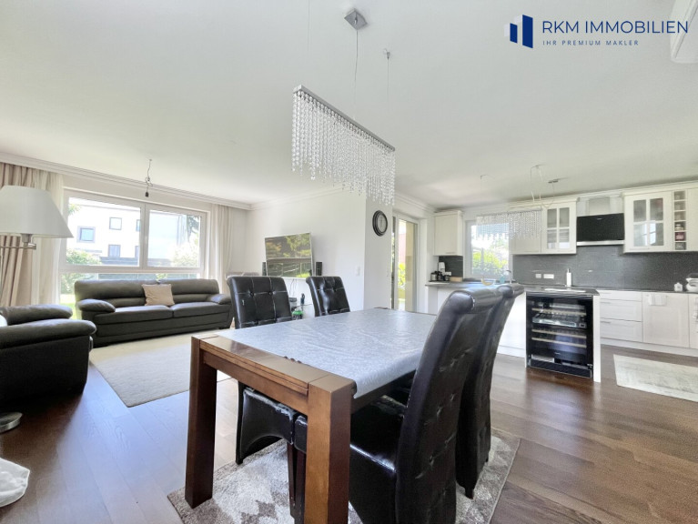 Herzstück des Hauses ist die offene Wohnküche – modern, funktional und zugleich einladend gestaltet. Die hochwertige Einbauküche mit modernen Geräten lässt keine Wünsche offen und macht jeden Kochabend zu einem Erlebnis.