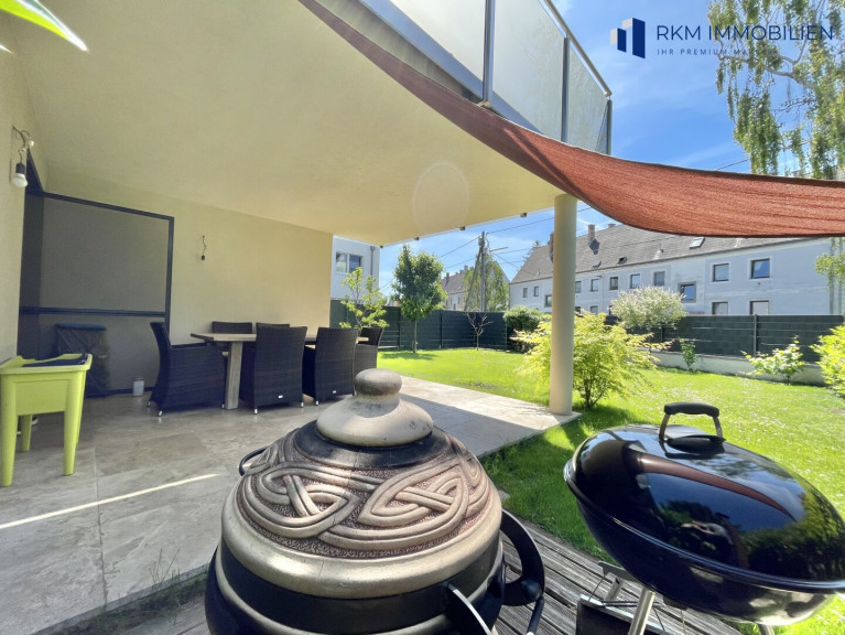 Der gepflegte Garten samt zwei Terrassen lädt zum Verweilen im Freien ein: Genießen Sie sonnige Frühstücke im Grünen oder entspannte Grillabende mit Freunden – hier wird Ihr Zuhause zur Wohlfühloase.