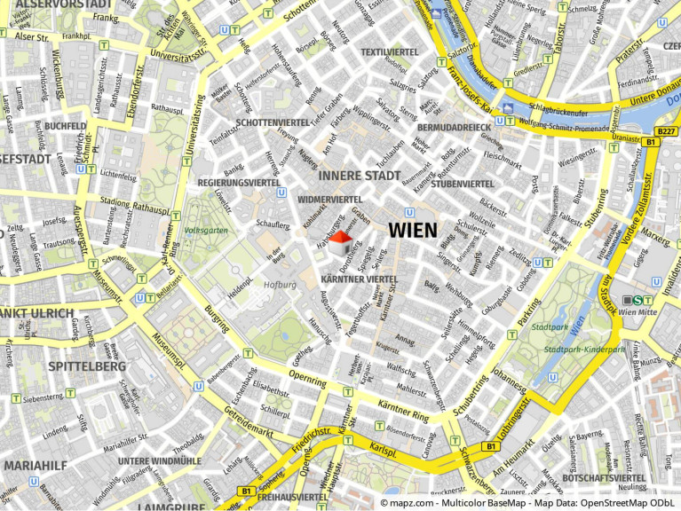 Die Lage im Herzen der Wiener Innenstadt bietet einerseits eine gute Anbindung an das öffentliche Verkehrsnetz (U1, U3, Autobuslinien 1A und 2A), und andererseits eine hervorragende Infrastruktur aufgrund der nahe gelegenen Geschäfte des täglichen Bedarfs. Viele Restaurants und Theater runden das Gesamtangebot ab. Ein Autoabstellplatz kann, nach Verfügbarkeit, in der öffentlichen Garage am benachbarten Stephansplatz angemietet werden.