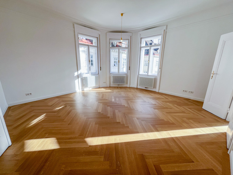Im herrschaftlichen Bräunerhof wurde soeben diese Wohneinheit generalsaniert und wird nun im Erstbezug nach Generalsanierung wieder vergeben.Die schöne und prachtvolle 6-Zimmer-Wohnung erstreckt sich insgesamt auf ca. 196 m² und teilt sich wie folgt: