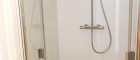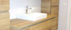 – Großformatfliesen in Badezimmer/WC mit moderner Sanitärausstattung