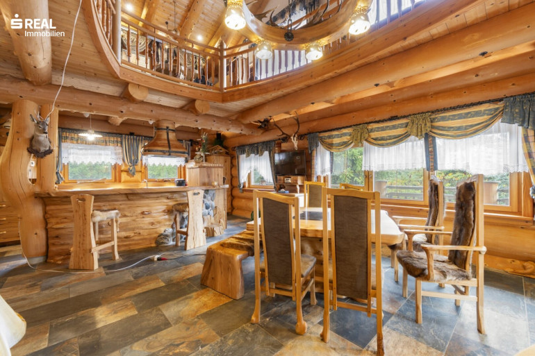 Diese exklusive Liegenschaft vereint Luxus, Gemütlichkeit und Funktionalität: Ein hochwertiges Rundholzhaus in kanadischer Bauweise und ein gepflegtes Familienwohnhaus sind durch einen unterirdischen Gang verbunden – ideal für stilvolles Wohnen mit maximalem Komfort.