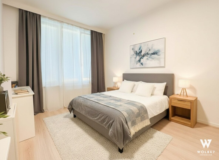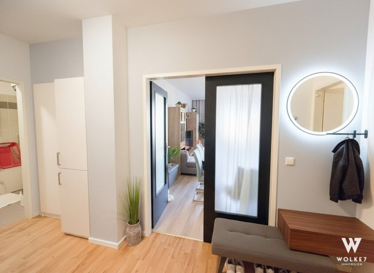 Diese liebevoll renovierte 2-Zimmer-Wohnung vereint stilvolle Wohnqualität mit Nähe zur Natur. Der durchdachte Grundriss schafft ein harmonisches Wohngefühl: Vom Vorzimmer aus gelangt man direkt in das separate WC, das moderne Bad mit Massage-Dusche sowie das ruhige Schlafzimmer mit Weitblick.