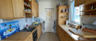 Bei den Einbaumöbeln wurde auf Qualität geachtet, was neben den Einbaukästen, -regalen und dem Essbereich mit einer Vollholzküche vollendet wurde. Neben der Küche gibt es eine Speis, die auch den Waschmaschinenanschluss beherbergt.