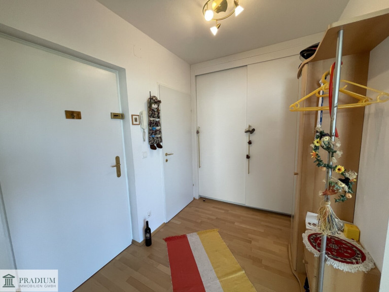 Die gesamte Hausanlage besticht durch einen durchwegs gepflegten ersten Eindruck, der schon beim Betreten des Grundstückes überzeugt. Über das verglaste Stiegenhaus im 2. Stock angelangt betritt man die Wohnung und befindet sich im Vorraum der Wohnung. Hier findet die Garderobe ihren Platz und man hat linker Hand sofort das Gäste-WC.