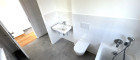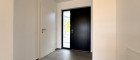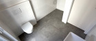 - In den Bädern sowie im Eingangsbereich und in den Fluren graue Bodenfließen aus Feinsteinzeug und Wandfließen in Weiß