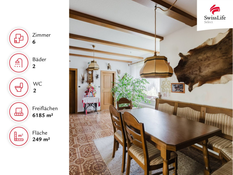 Dieses großzügige und vollunterkellerte Wohnhaus mit zwei getrennten Wohneinheiten bietet Ihnen die Gelegenheit, Ihre Wohnträume zu verwirklichen. Mit rund 250m² Gesamtwohnfläche und einem großzügigen Grundstück inklusive zusätzlichem Grünland, eröffnet sich hier viel Raum für Ihre individuellen Wünsche und Gestaltungsideen.