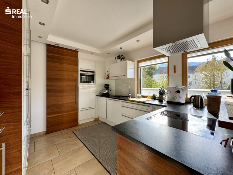 Die Wohnfläche von ca. 147 m² verteilt sich auf 2 Ebenen, die Küche mit Wohn-Essbereich, sowie die daran anschließende Terrasse befinden sich im oberen Stockwerk des Hauses, dies bewirkt ein ganz besonderes Wohngefühl sowie einen tollen Ausblick vom Wohnraum als auch der Terrasse. Ein Schlafzimmer mit Ausgang zum Dachgarten, auf dem sich ein Hochbeet befindet, sowie ein WC befinden sich ebenfalls im Obergeschoß.