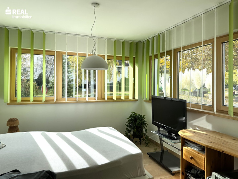Das um 2009 in Vollholz-Massivbauweise errichtete Wohnhaus befindet sich auf einem perfekt genützten Eckgrundstück in ruhiger Lage mit Blick auf das Schloss Kirchberg.