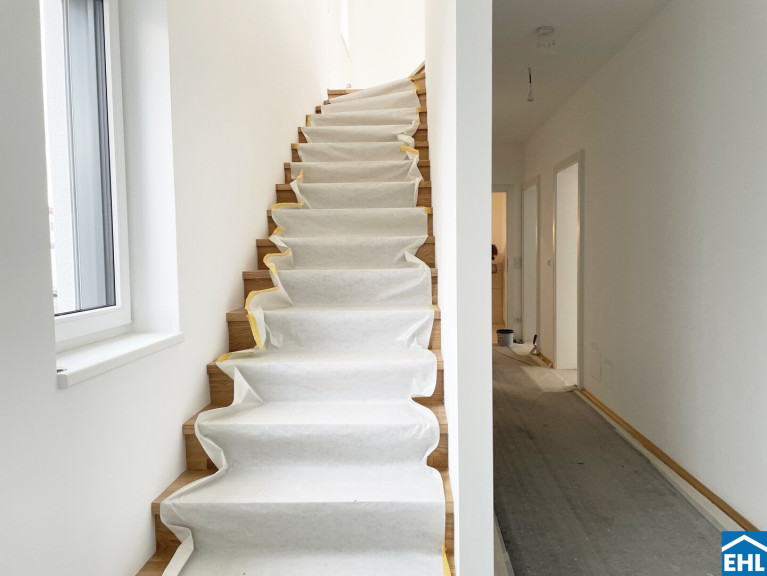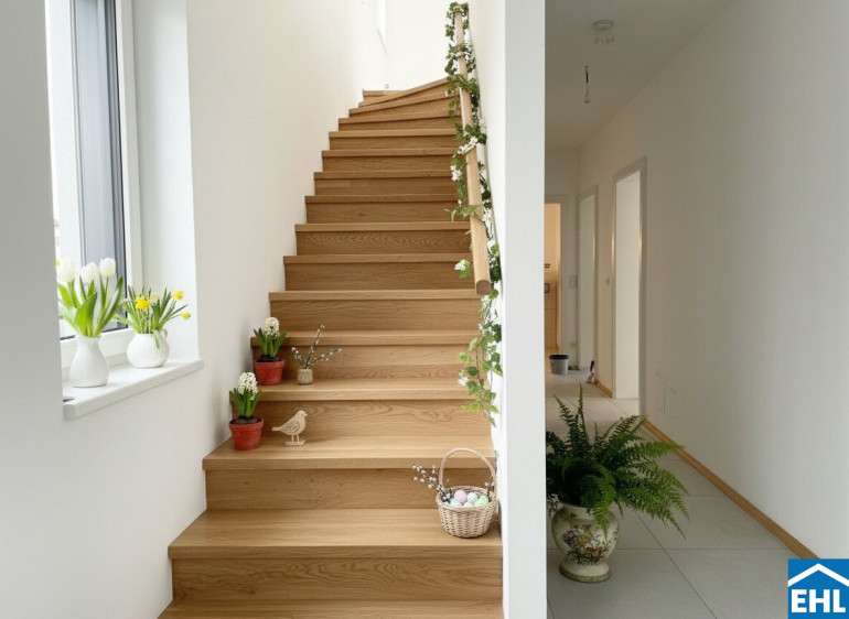 Die ruhige, grüne Umgebung punktet mit Naherholungsgebieten, Parks und guter öffentlicher Anbindung nach Wien. Schulen, Kindergärten und Einkaufsmöglichkeiten sind schnell erreichbar – ideal für den Alltag mit Kindern.