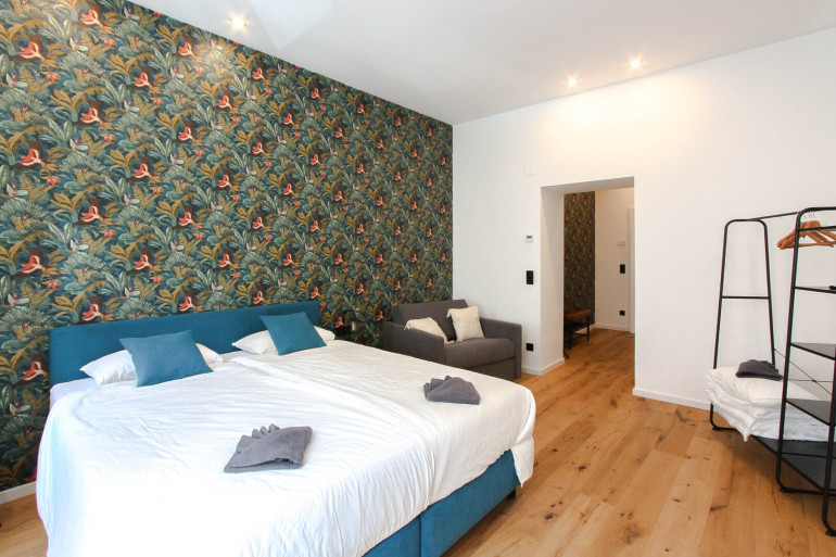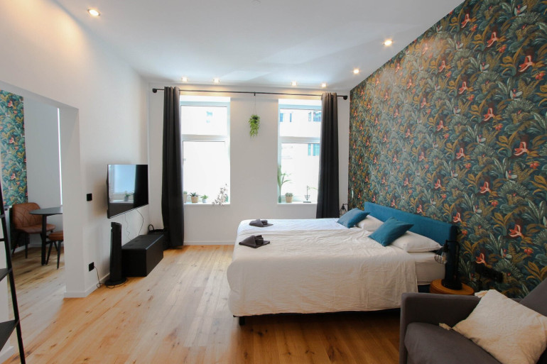 Das Apartment verfügt über ein ausklappbares 1-Sitzer-Sofa mit Bettfunktion sowie ein Boxspringbett in Hotelqualität, das höchsten Schlafkomfort bietet.