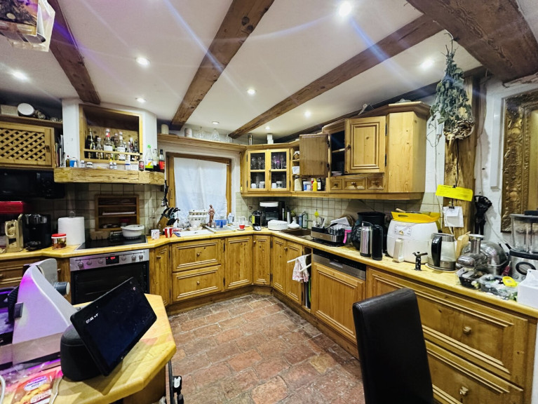 Geräumige Wohnküche in U-Form mit Vollholzfronten.