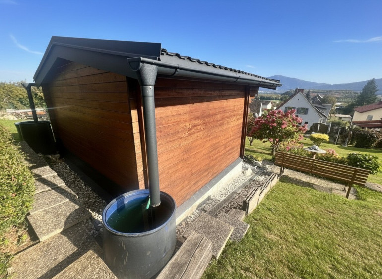 Innenliegende Garage und zusätzliches Carport für zwei Autos