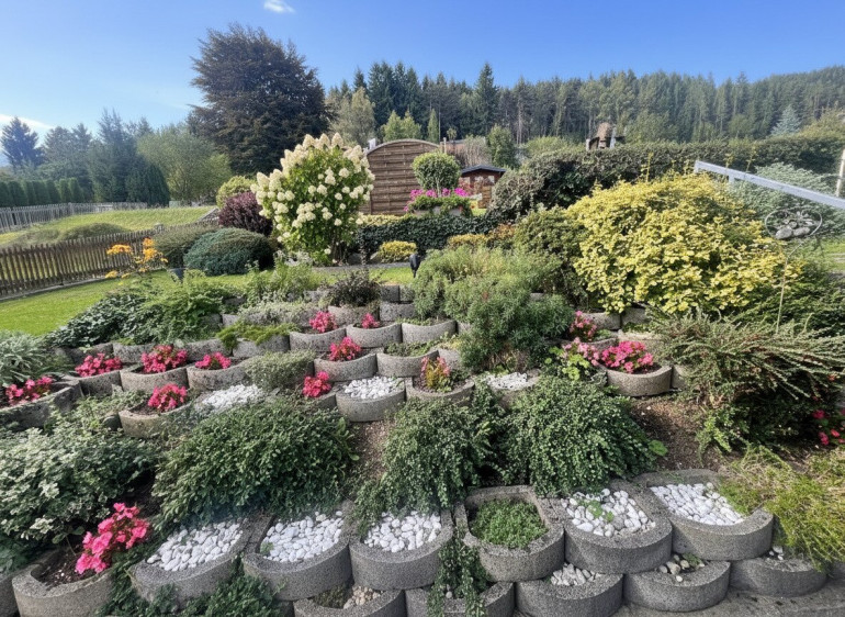 Großzügiger Garten mit Gartenhäuschen, Terrasse und Solardusche