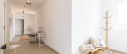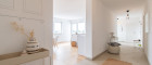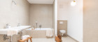 Vom zentralen Vorraum aus sind alle drei Schlafzimmer, Badezimmer, separate Toilette und ein Abstellraum begehbar. Das Badezimmer verfügt über Badewanne, Dusche, Doppelwaschbecken und Waschmaschinenanschluss.