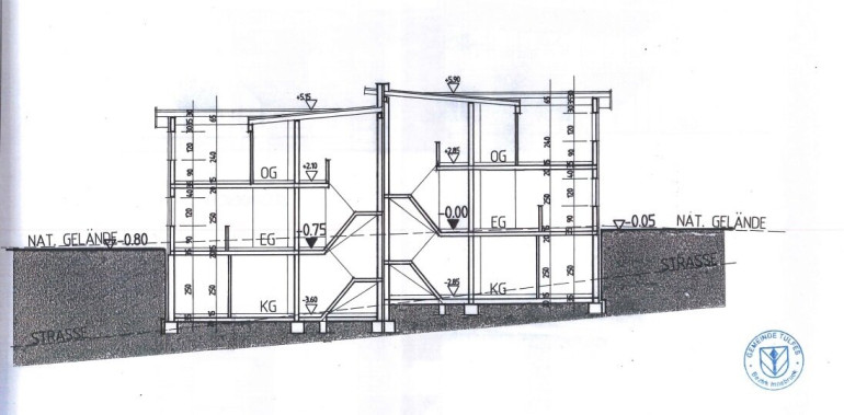 - Innenfläche: 102,26 m2 zzgl. 7,79 m2 Stiegenhaus, 31,12 m2 Kellergeschoss und 39,09 m2 Doppelgarage