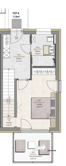 Erleben Sie luxuriöses Wohnen in diesem beeindruckenden Maisonette-Penthouse (TOP 8) mit ca. 113 m² Wohnfläche, das Ihnen ein einzigartiges Wohngefühl in einer der schönsten Lagen des Ennstals bietet. Diese exquisite Wohnung besticht durch ihre durchdachte Raumaufteilung und die einmalige Aussicht. Genießen Sie den ca. 9 m² großen, südseitigen Balkon im 1. Obergeschoss sowie die großzügige ca. 37 m² große Terrasse, die nach Süden, Norden und Westen ausgerichtet ist. Von hier aus haben Sie einen atemberaubenden Blick auf den majestätischen Grimming, den Putterersee und die umliegende Bergwelt.